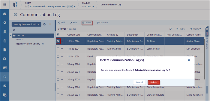 - Click the Delete button displayed in the top menu bar. This opens the Delete Record popup window.