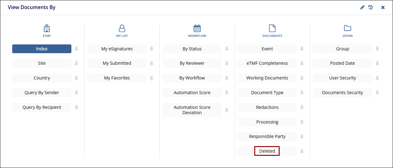 - Deleted documents can be viewed in the Deleted Documents section of the Documents
