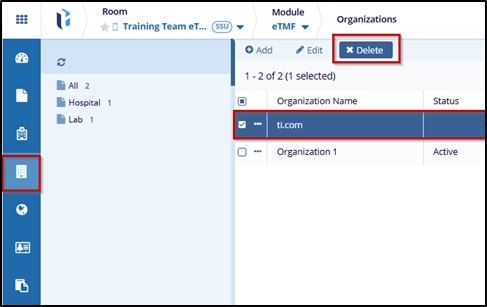- In the eTMF module, go to the sidebar and click on the Organizations modal.
