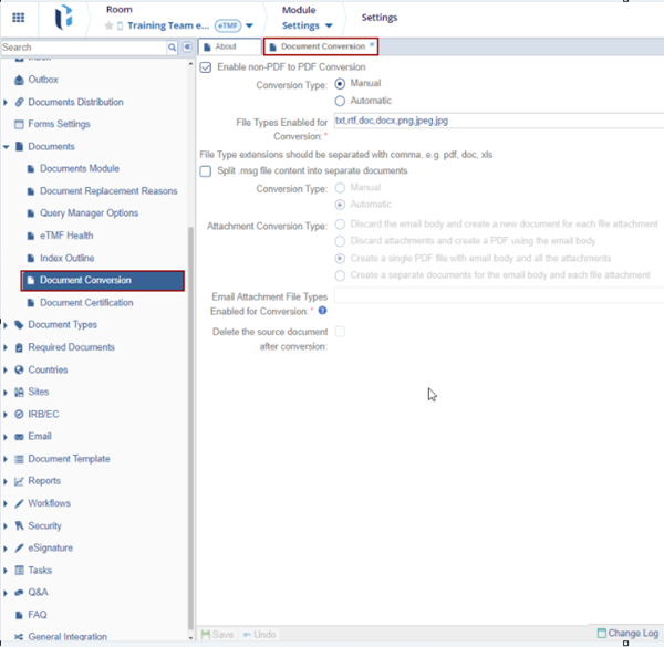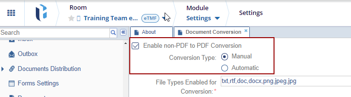 - Navigate to Navigation Grid -> Settings -> Documents-> Document Conversion.
