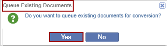 the "Queue Existing Documents" pop-up window appears. This occurs if the user has