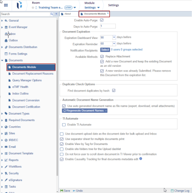 Trial Interactive offers the ability to permanently purge deleted documents as needed. This can be done manually from the Deleted Documents view in the Documents module or configured as an automated process. Follow the instructions below to set up Auto Purge.