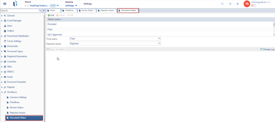 Document Status displays the status names that have been assigned to the documents.