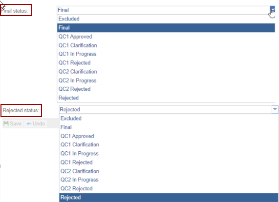 - The Final Status and the Rejected Status fields display the status
