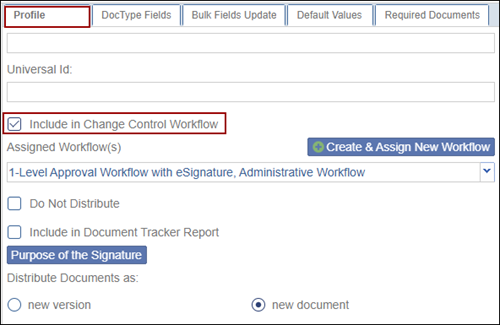 - Click on the Profile tab and check the Include in Change Control Workflow checkbox.