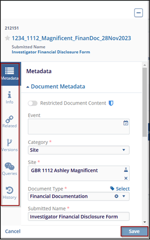 - Select the required and appropriate checkboxes from the Submitted name option to select the document, next to the checkboxes, the user can click on the blue arrow (Go to the document), which will navigate to the document index.
