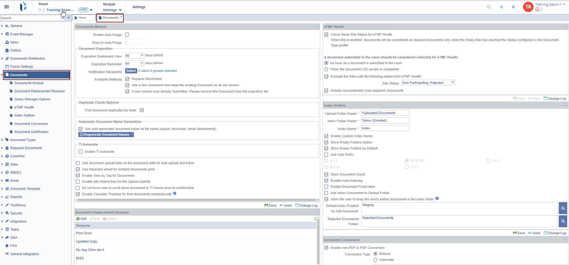 Here, you can manage all document-related settings for a room. The Document page provides the following options: