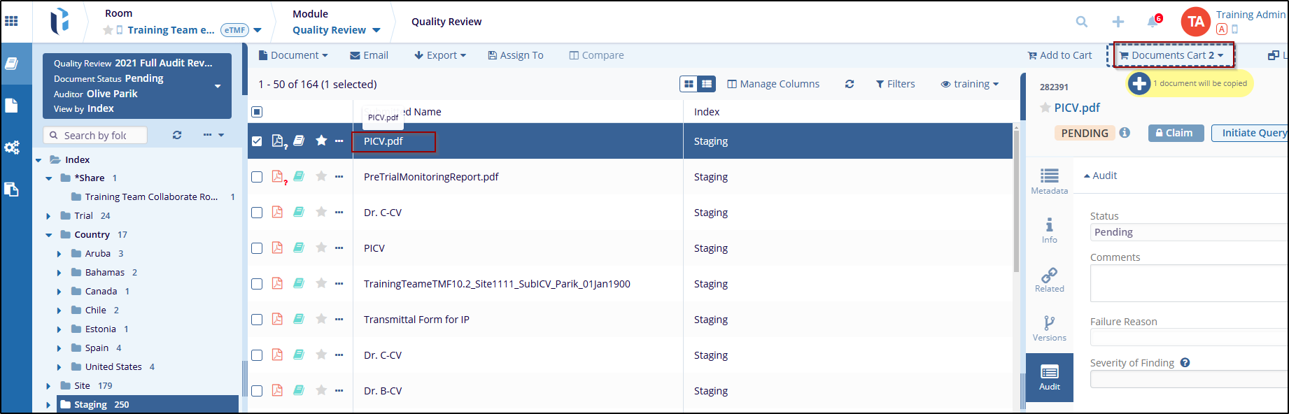To add a document to the Document Cart, follow these steps: