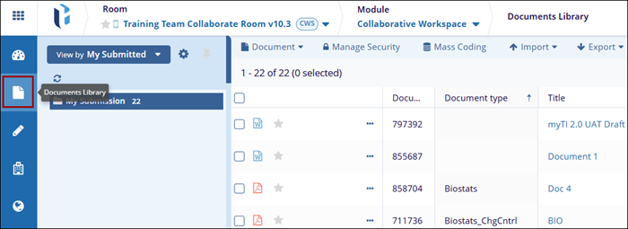 The Documents Library is the central repository for all the clinical trial documents in their original digital format with Digital Signatures wherever applicable, records, or documents converted from one format to another such as paper documents, images converted to PDFs, videos, and recordings about trials.