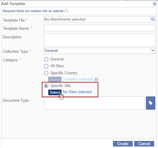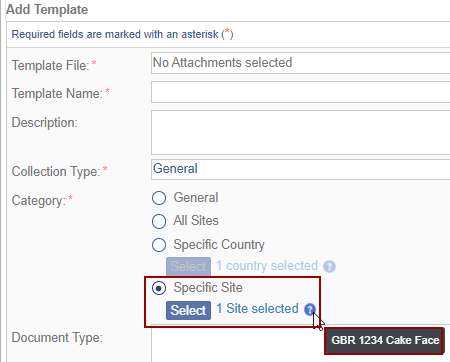 - If the user selects the category as Specific Site the Select button below gets activated.