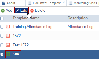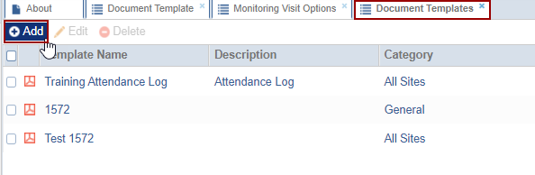 In the Document Templates settings, Administrator users can add, edit, and delete document templates.