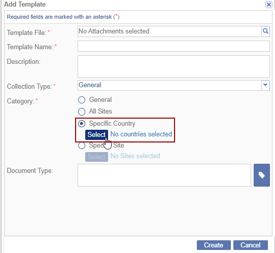 - If the user selects the category as ‘Specific Country’ the Select button below it