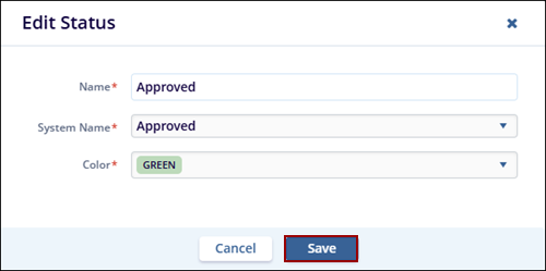 - Make the necessary changes to the Name*, System Name*, and Color* fields and click