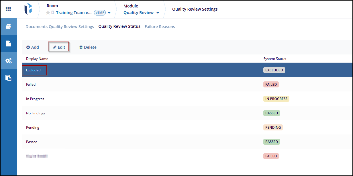 - Select the status from the list in the Display Name in the Quality Review Statuses tab.