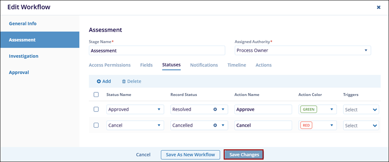 - On the Edit Workflow screen, make the required changes in each stage and click on