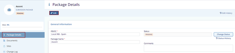 - Click on the Edit button displayed on the top menu bar. The Package Name
