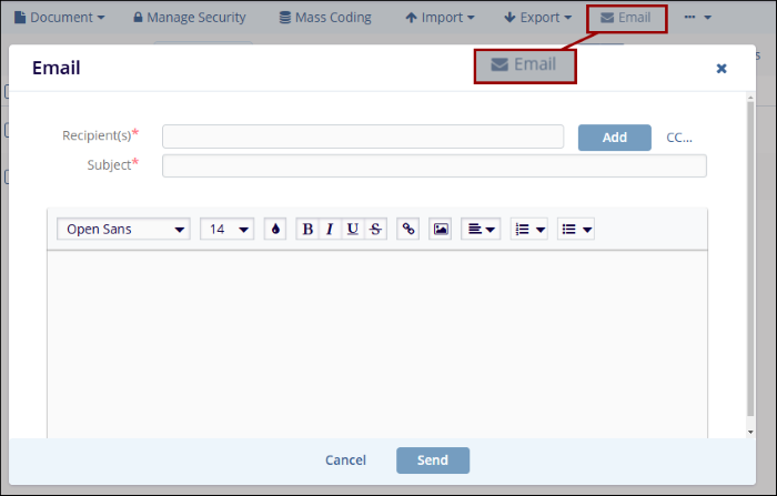 - Additionally, click the CC button to specify the list of CC recipients.