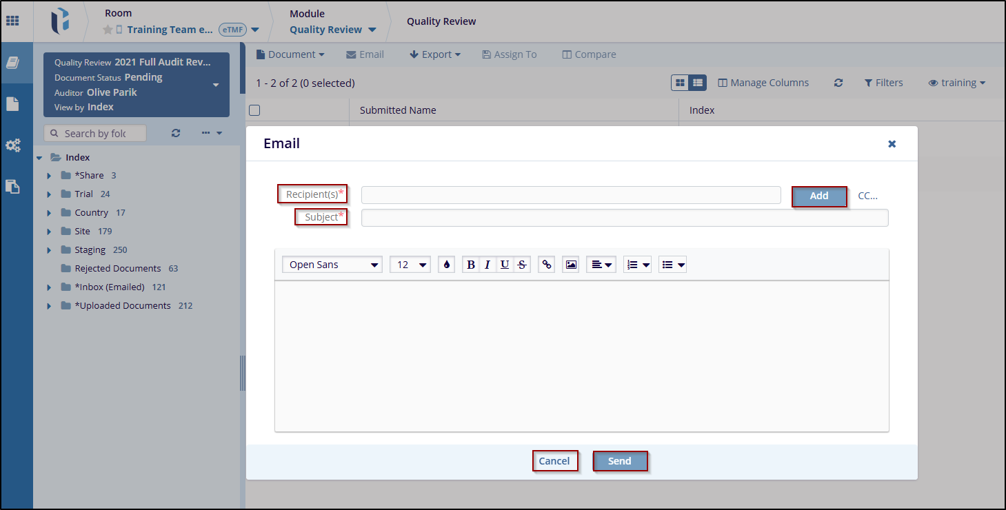 - Click the Add button if the user wants to add additional recipients or use the CC button to include people in the CC field.