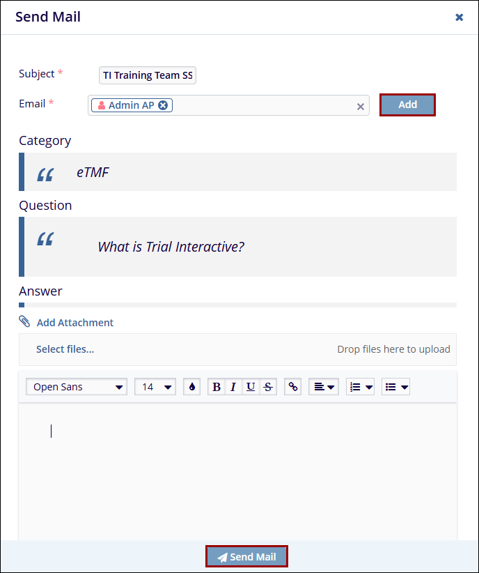 - On the Send Email window, add the email recipients by clicking on the Add button.