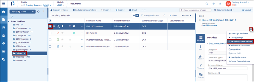 Workflow. This will cause the Exclude document from Workflow window will open.