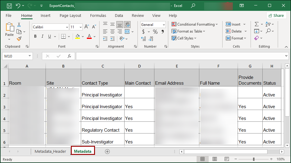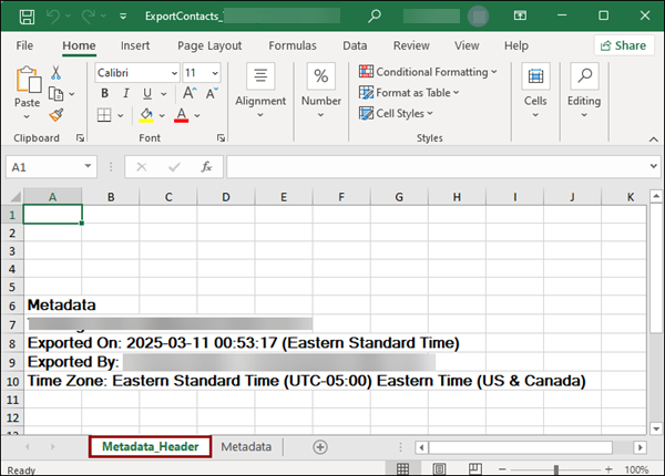 - On the downloaded file, click on the Metadata_Header tab to view the header details i.e.,