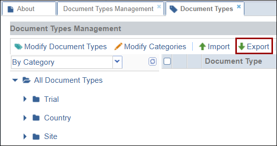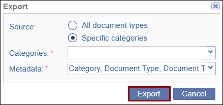 Specific Categories: This options allows exporting document types associated with specific categories.
