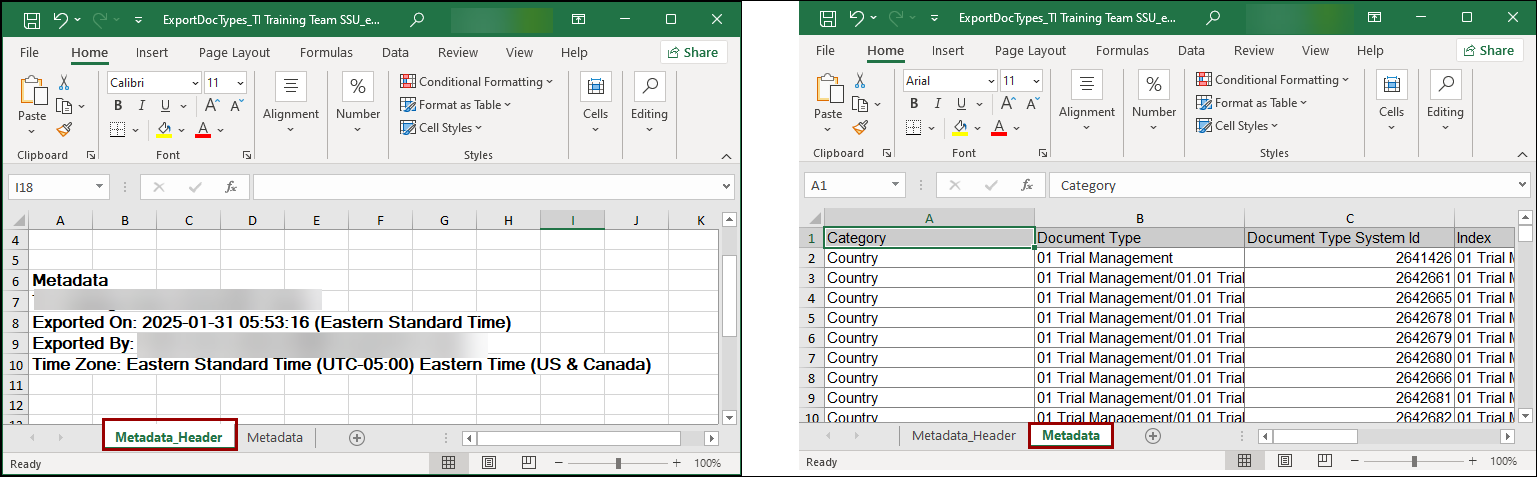 - The downloaded file displays the Metadata Header and Metadata tabs with the
