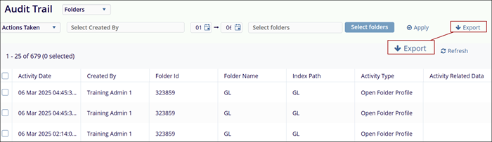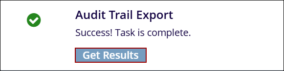 - On the Audit Trail Export popup displaying the success message, click on the Get Results