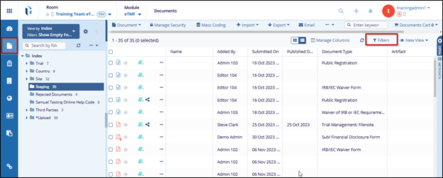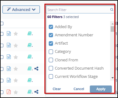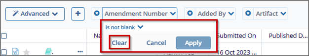 - The selected filters will display above the grid. Use the dropdown arrow next to