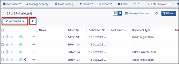 - Two options appear: Advanced and +. Click the + icon to add a filter.