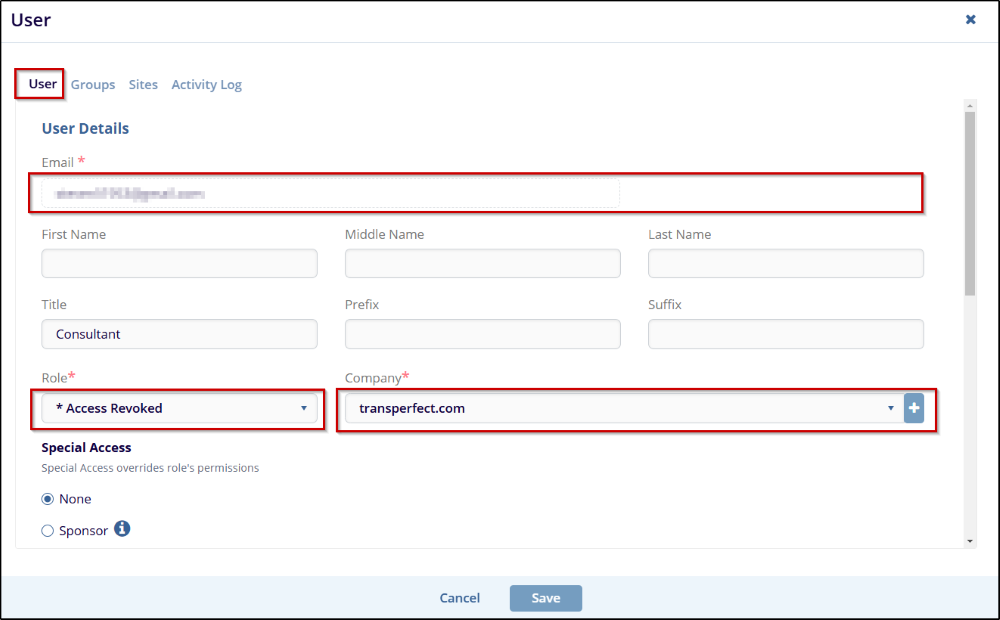 - Once you've made the desired changes, click Save to confirm. If further modifications are needed, such as How to Assign a User to Sites, you can navigate to the Sites tab.