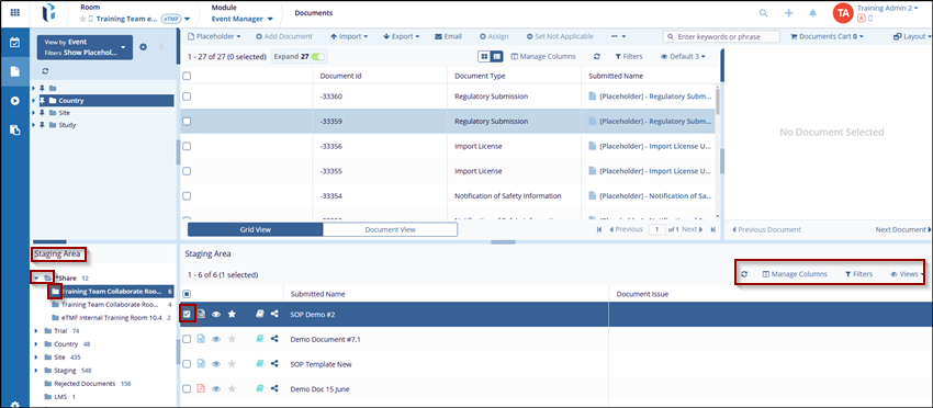 - Select the available documents views under folders: Share, Trial, Country, Site, etc.
