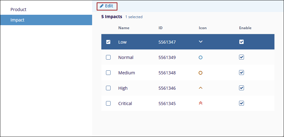 - Check or uncheck the checkbox under the ‘Enable’ header to display the impact value