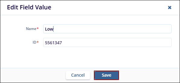 - On the ‘Edit Field Value’ popup, edit the name and click on the Save button
