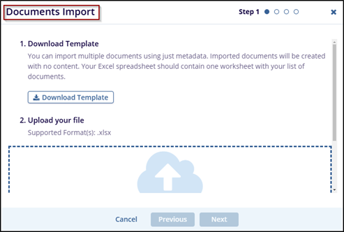- In the Document Imports window, click on Download Template to get a pre-formatted file that contains the required metadata fields.