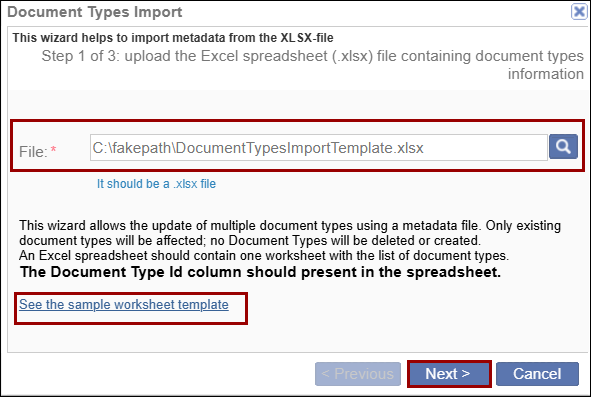 - Click on the See the sample worksheet template to download a specimen template and add the metadata.
