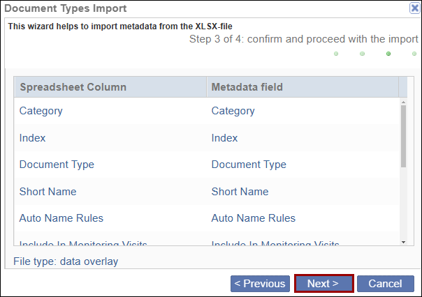 In Step 3, verify & confirm the metadata fields mapping and click on the Next button.