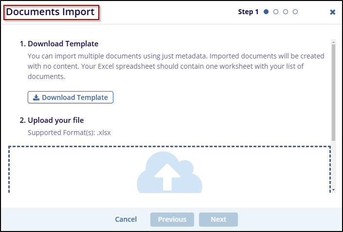 - In the Document Imports window, click on Download Template to get a pre-formatted file that contains the required metadata fields.