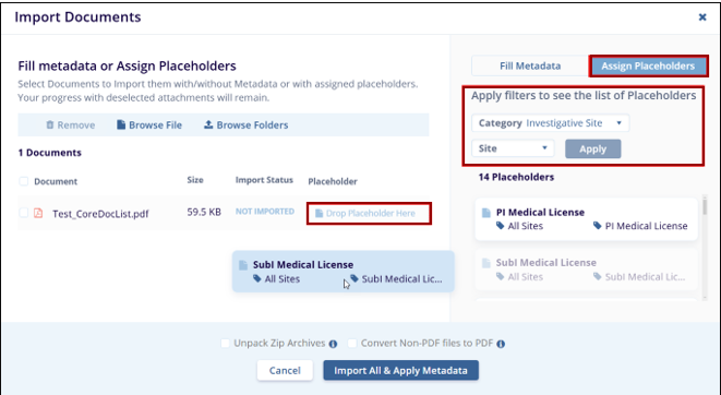 - Click the Import button displayed on the top menu bar. This opens the Import Documents popup window.