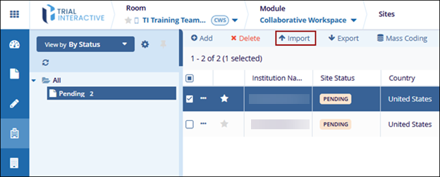 To import sites from the Collaborative Workspace module, follow the steps below.