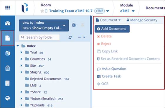 - Navigate to the Documents module and click the Document button on the top ribbon above the grid.