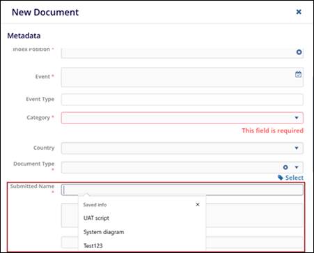 - The New Document window is displayed. Fill in all the required fields, such as: