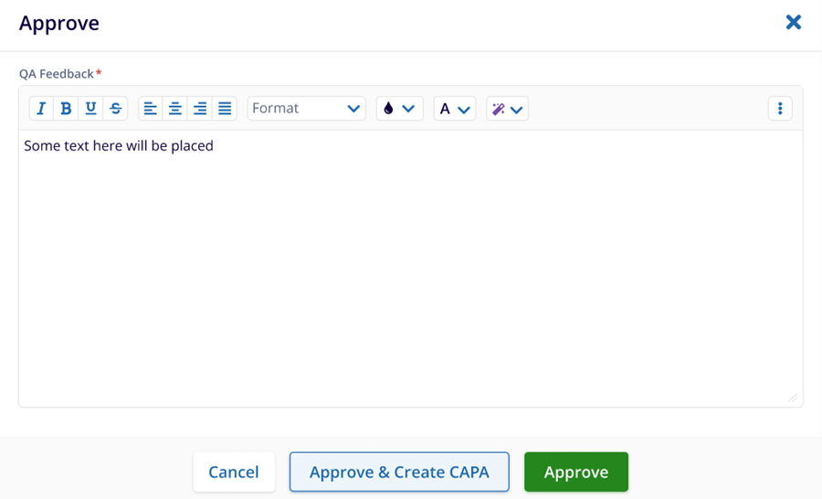 - The Approve window will appear with a feedback box. Provide feedback as per the requirement.
