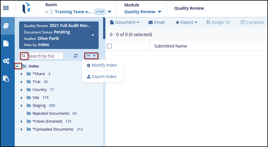 - Click the dropdown arrow next to search by folder on the left side of the screen, this will open a list of available folders, or click the search bar and the user can enter the required folder name or sub-folder name for a quick search.