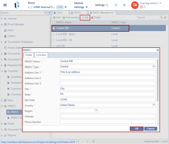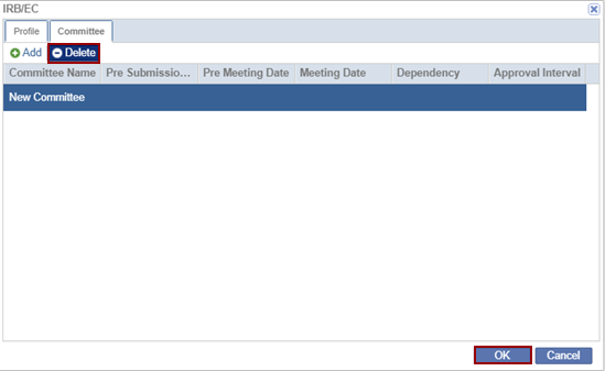 Click the Add button. The IRB/EC window is displayed with the Profile tab by default.