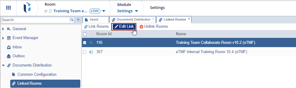 This option displays the linked rooms in the grid with the Edit Link and Unlink Rooms options.