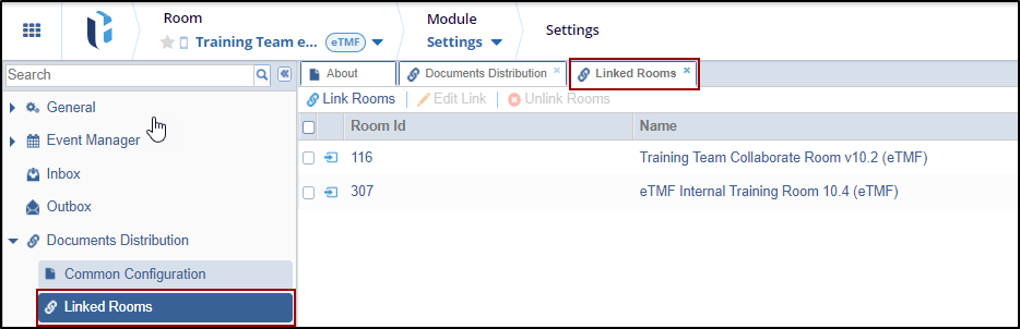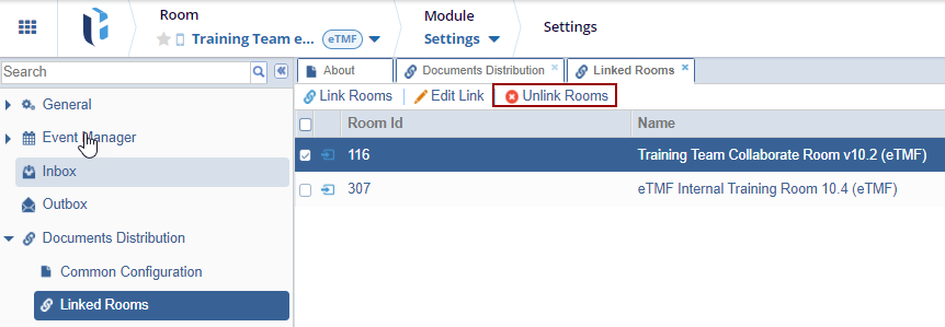 - Select the room from the grid, the Unlink Rooms option gets enabled.