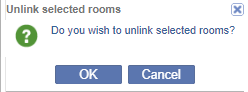 - Click the Unlink Rooms button below the top menu bar. The Unlink selected rooms pop-up window is displayed.