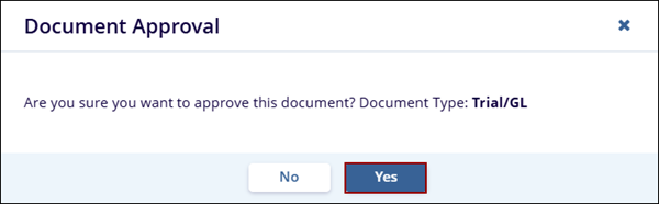 - On the Document Approval confirmation popup, click on the Yes button.