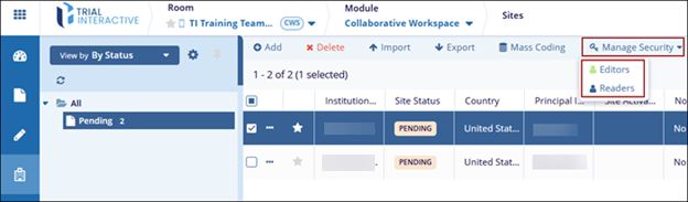 Check the box next to the site to manage security settings.